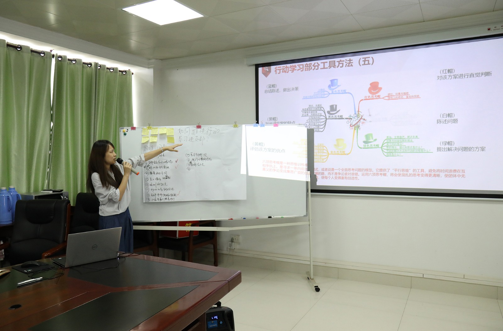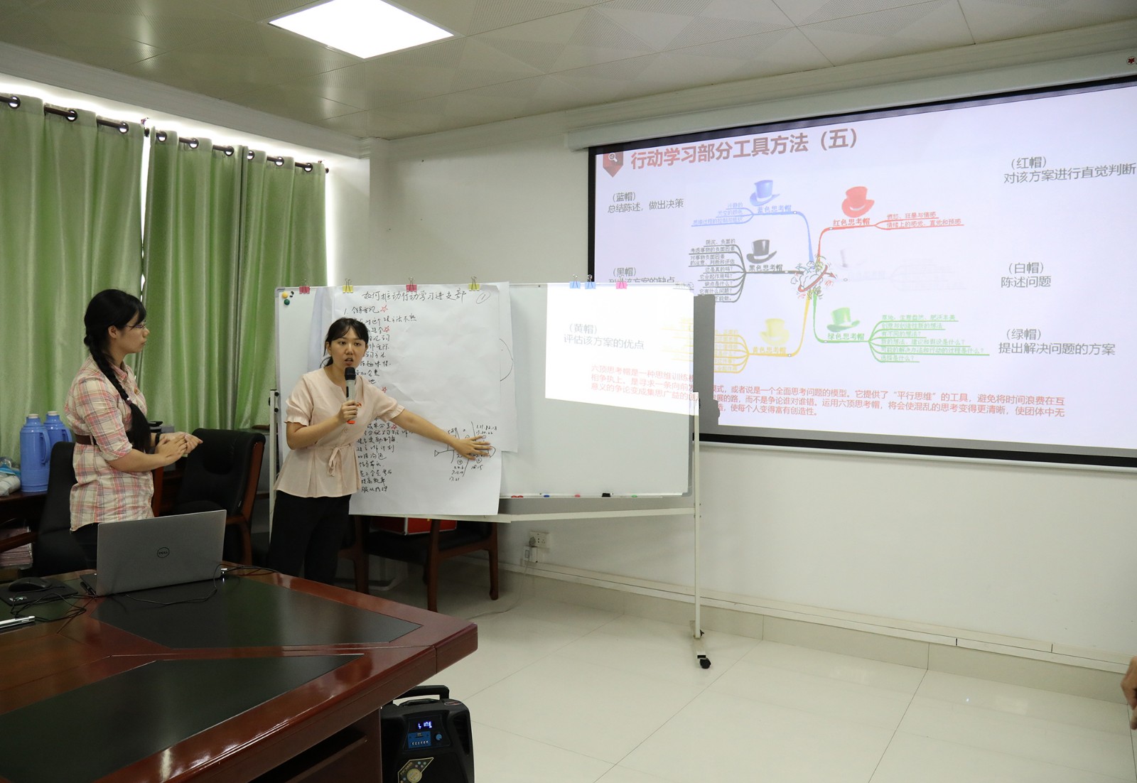 隨后各小組派代表依次上臺(tái)分享小組研討成果,其他小組則分別運(yùn)用“黃帽子”(好的)和“黑帽子”(不足)對(duì)其他小組展示成果進(jìn)行點(diǎn)評(píng)。在實(shí)操演練過(guò)程中,各小組成員積極參與踴躍發(fā)言,會(huì)場(chǎng)研討學(xué)習(xí)氛圍濃厚,大家在學(xué)習(xí)、討論、交流的過(guò)程中增長(zhǎng)了用行動(dòng)學(xué)習(xí)方法、工具解決實(shí)際問(wèn)題的能力。